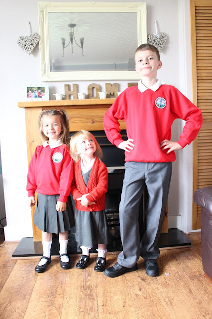 Martha wasn't due to start school until the afternoon on Monday, but we still dressed her ready for school just so I could get a photo of the three of them ready for school. She was very confused and unimpressed when she had to get dressed in other clothes once the photos were done - she doesn't enjoy being a blogger's child.